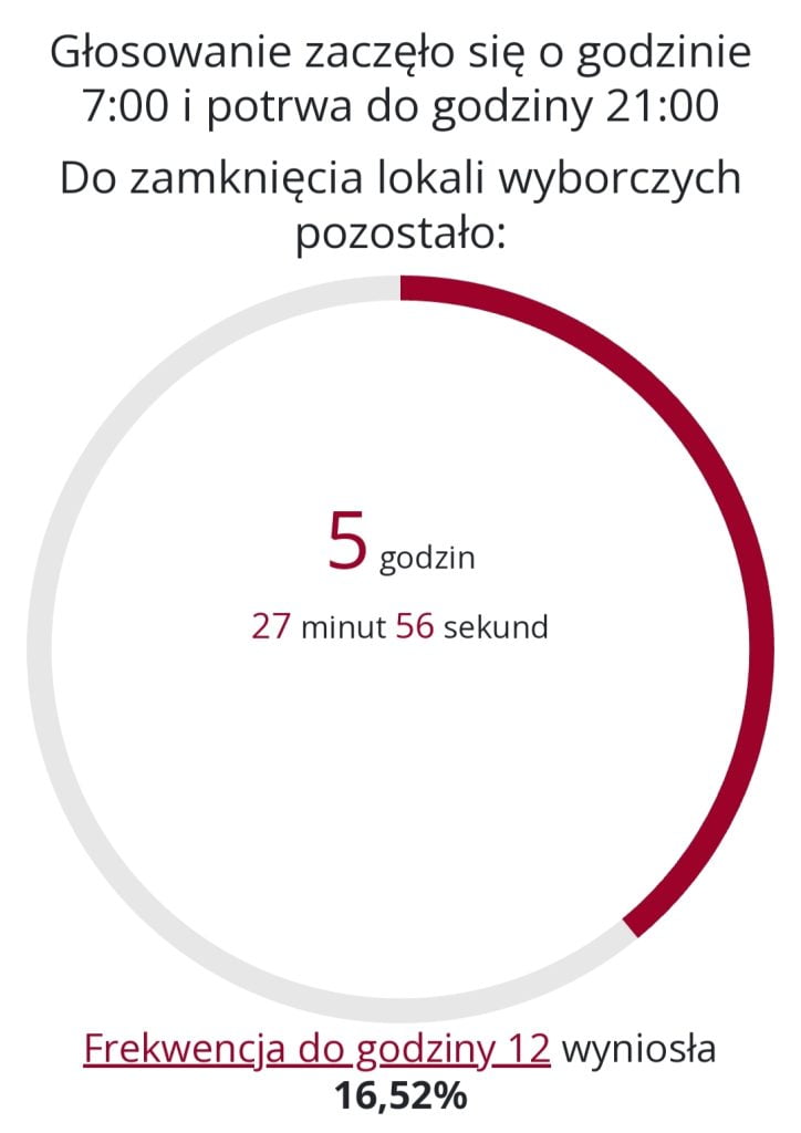 Do godziny 12.00 frekwencja wyniosła 16.52%, podajemy za Państwową Komisją Wyborczą