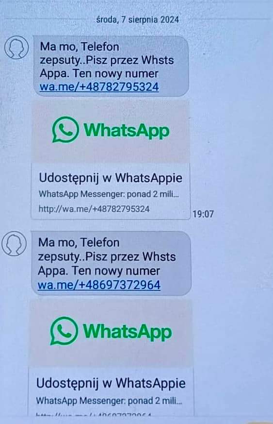 Policjanci z gostyńskiej komendy otrzymali kolejne zgłoszenie o oszustwie. Tym razem przez aplikację Whats App. Kobieta dostała wiadomość: