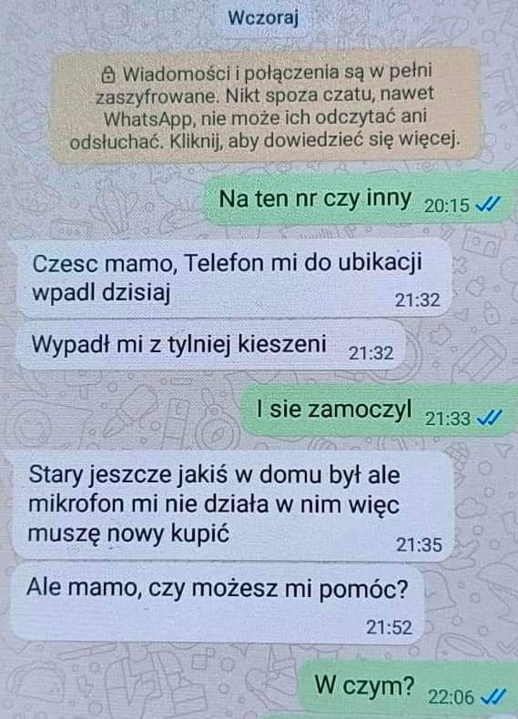 Po tym pojawiła się prośba o przelanie pieniędzy na zakup nowego telefonu.
