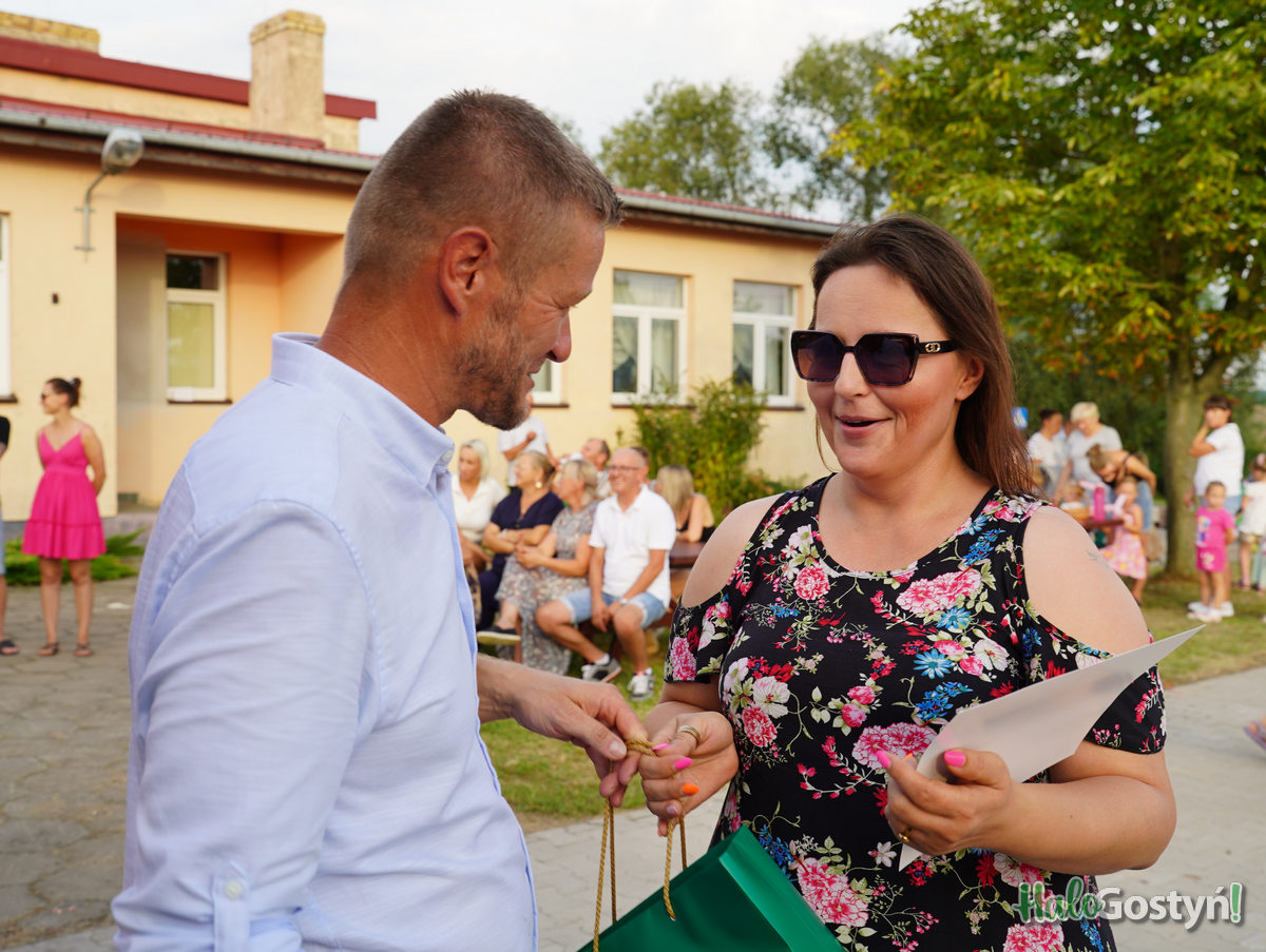 Miłym akcentem tegorocznych dożynek były także podziękowania dla byłej sołtys Agnieszki Wojtkowiak za 13 lat rządzenia sołectwem, które w imieniu całej społeczności złożył obecny włodarz wsi, Błażej Stachowiak. Przekazał na ręce mile zaskoczonej poprzedniczki kwiaty w wersji ekologicznej- słoja z roślinkami.