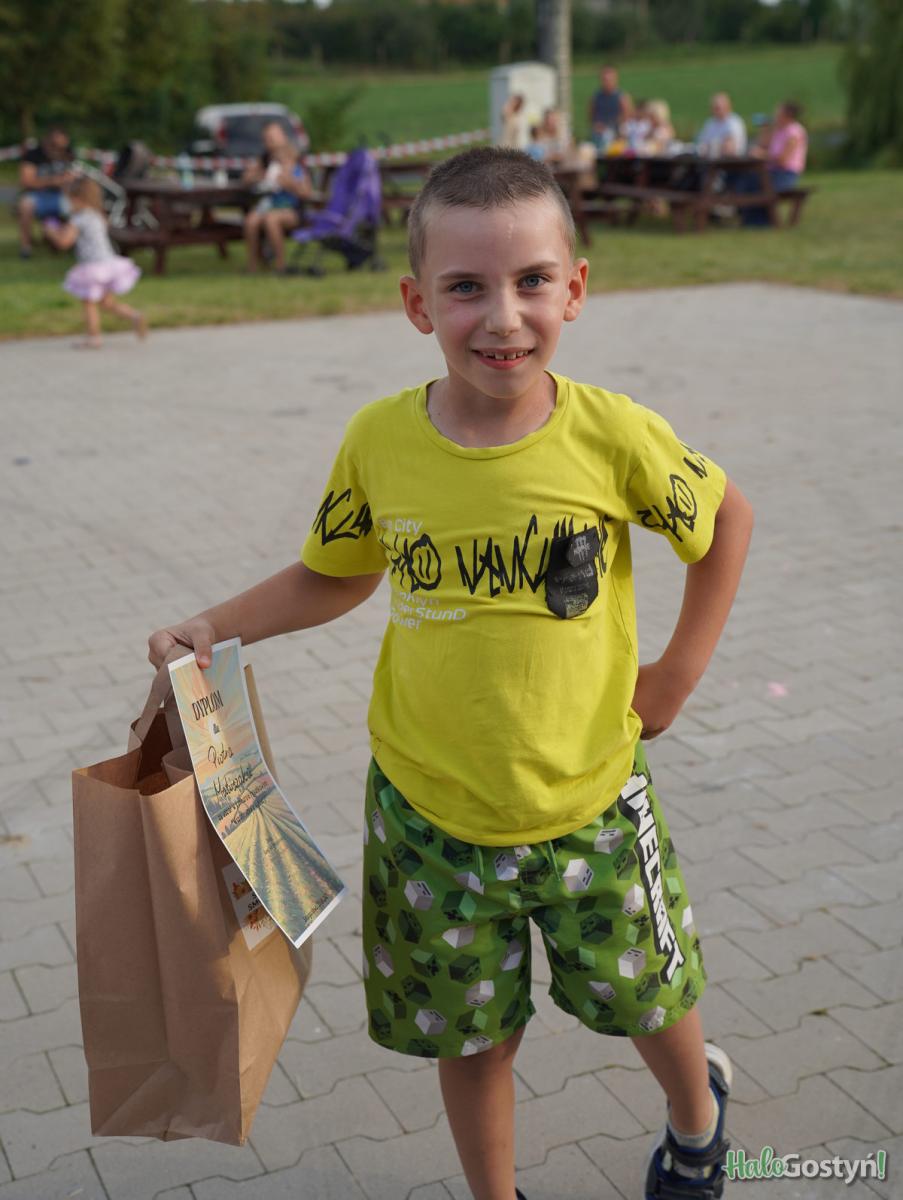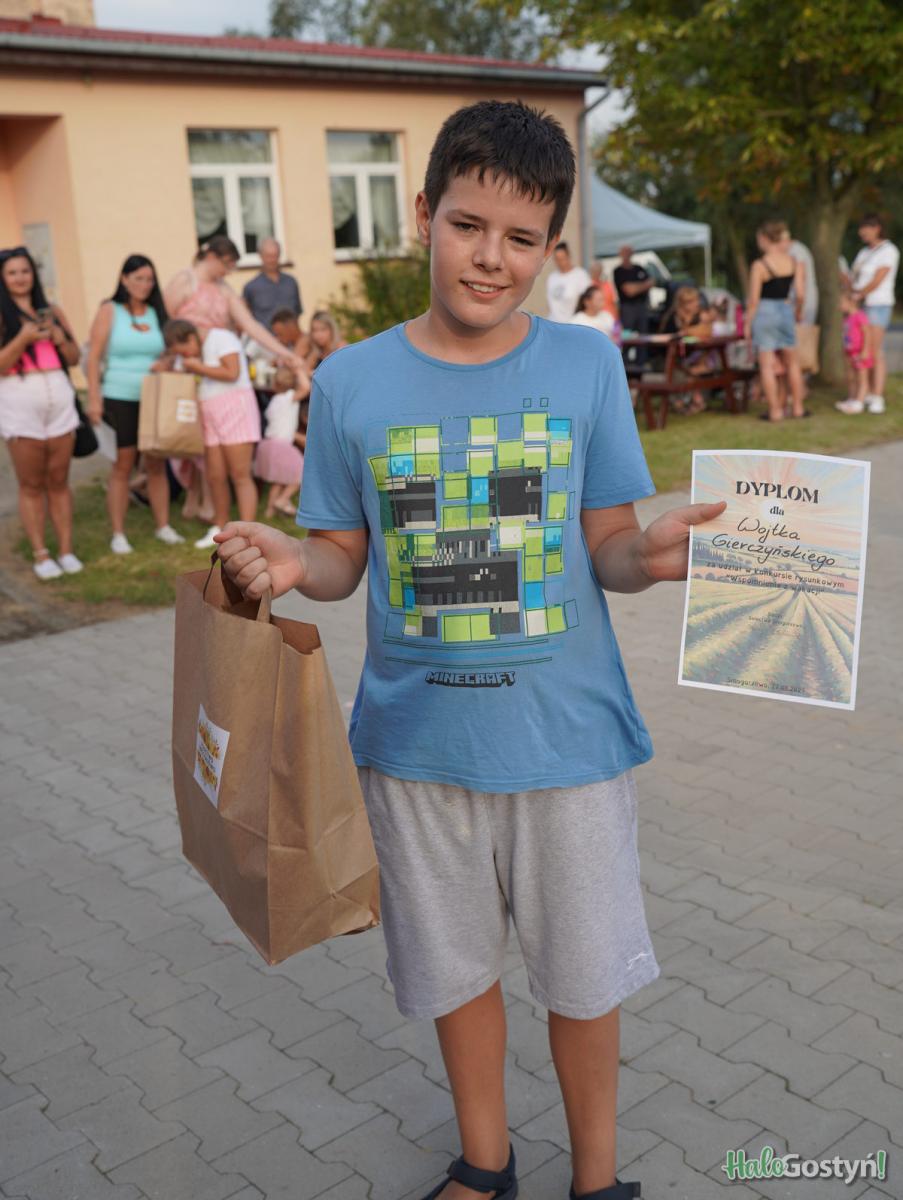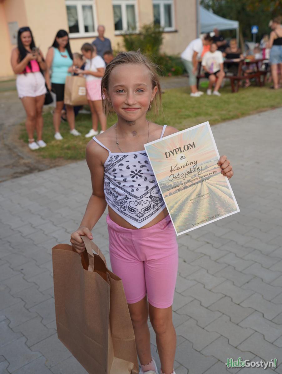 Na ogłoszony konkurs plastyczny pt. „Moje wakacje” wpłynęło kilkanaście prac uczestników z różnych grup wiekowych, twórcy mieli od bodajże 2 do 12 lat. Decyzją jury wyróżniono i nagrodzono wszystkie zgłoszone prace. Ceremonię rozdania nagród przeprowadził (gościnnie) Sebastian Nowak, dyrektor Centrum Kultury i Biblioteki w Piaskach. I to on także rozmawiał ze zwyciężczynią konkursu na najsmaczniejszy chleb dożynek.