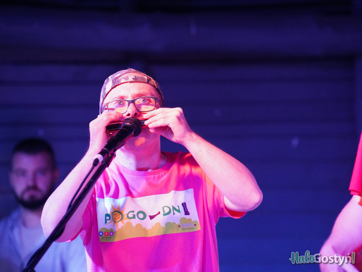 Tuż po nich na deskach zainstalowała się kilkunastoosobowa ekipa z POGO-DNI z Jarocina. I tu pełne zaskoczenie, bo po spokojnej piosence na wejście, grupa muzyków i wokalistów dała nam niezły przekrój utworów muzyki alternatywnej pięknych lat 80- tych i 90- tych, w tym „Balladę o smutnym skinie” BIG CYCa czy „I nikomu nie wolno się z tego śmiać” Kobranocki. Pod scena zaczęły się wspólne śpiewy i pogowanie, a na niej artyści z niepełnosprawnościami dawali z siebie wszystko. Piękna sprawa.