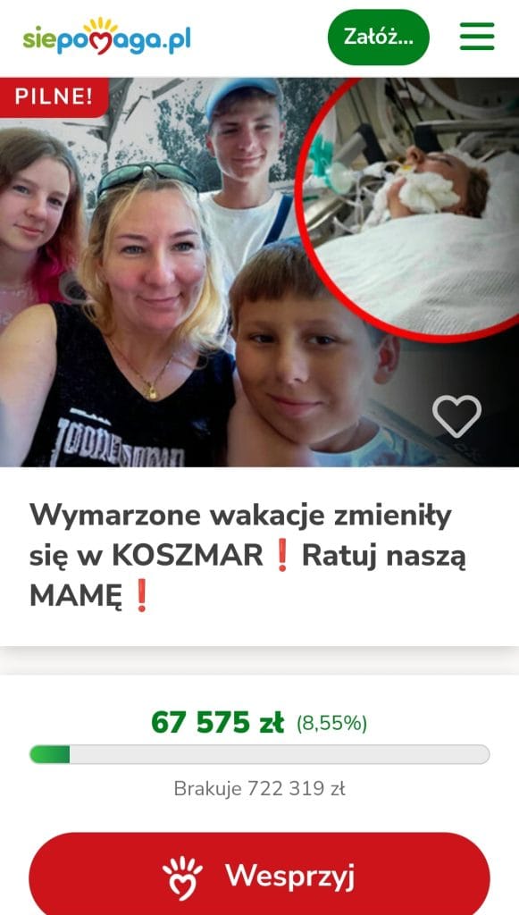 Zbiórka opiewa w tym momencie na 800 tys. złotych, z czego pamiętajmy, ponad 6% pozostaje na koncie platformy pomocowej. Na tę chwilę uzbierano prawie 70 tys. złotych. To dużo, ale nadal za mało…