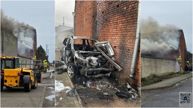 Nietrzeźwi kierowcy to zmora polskich dróg. Tym razem w niedzielę 24 listopada 2024 r. pijany kierowca nie opanował pojazdu i uderzył nim w budynek gospodarczy w Kuczynie. Auto uległo zapaleniu. Z płonącego wraku kierowcę wyciągnęli świadkowie zdarzenia, notabene ratując mu życie. W niedzielny poranek, 24 listopada 2024 r. w Kuczynie w gminie Krobia doszło do … Czytaj dalej Kompletnie pijany kierowca spowodował kolizję ze… stodołą. Auto stanęło w ogniu [Aktualizacja]
