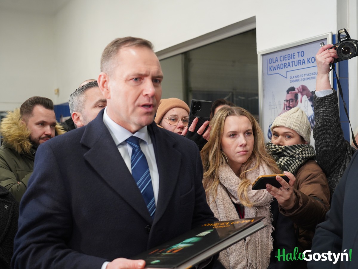 Kandydat na prezydenta RP spóźnił się z konkretnego powodu. Wcześniej odwiedził świętogórską bazylikę, skąd przywiózł pozdrowienia od przeora filipinów dla szkolnego kolegi, Remigiusza Dolaty. Mieliśmy okazję nagrać część spotkania dra Nawrockiego z właścicielami gostyńskiej firmy, w którym uczestniczył także poseł Jan Dziedziczak oraz Piotr Kogut, Hubert Łapawa i Mikołaj Wojtyczka, wszyscy z partii Prawo i Sprawiedliwość.