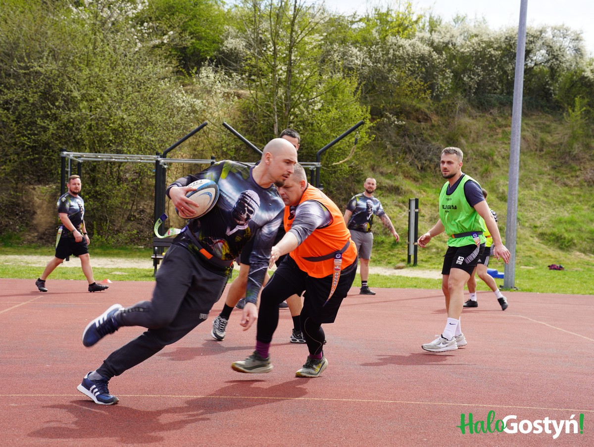 Gra w rugby. Pierwsze skojarzenie: jajowata piłka, dziwne bramki w kształcie litery H, no i te szarże na przeciwnika. O tym, jak naprawdę gra się w tę kontaktową grę drużynową przekonali się śmiałkowie, którzy pojawili się na darmowym treningu rugby w niedzielę, 13 kwietnia 2025 r. na boisku w Gostyniu. Gospodarze gry, klub Rugby RGB Śrem dali z siebie wszystko, by spopularyzować grę i zachęcić nowych zawodników.
